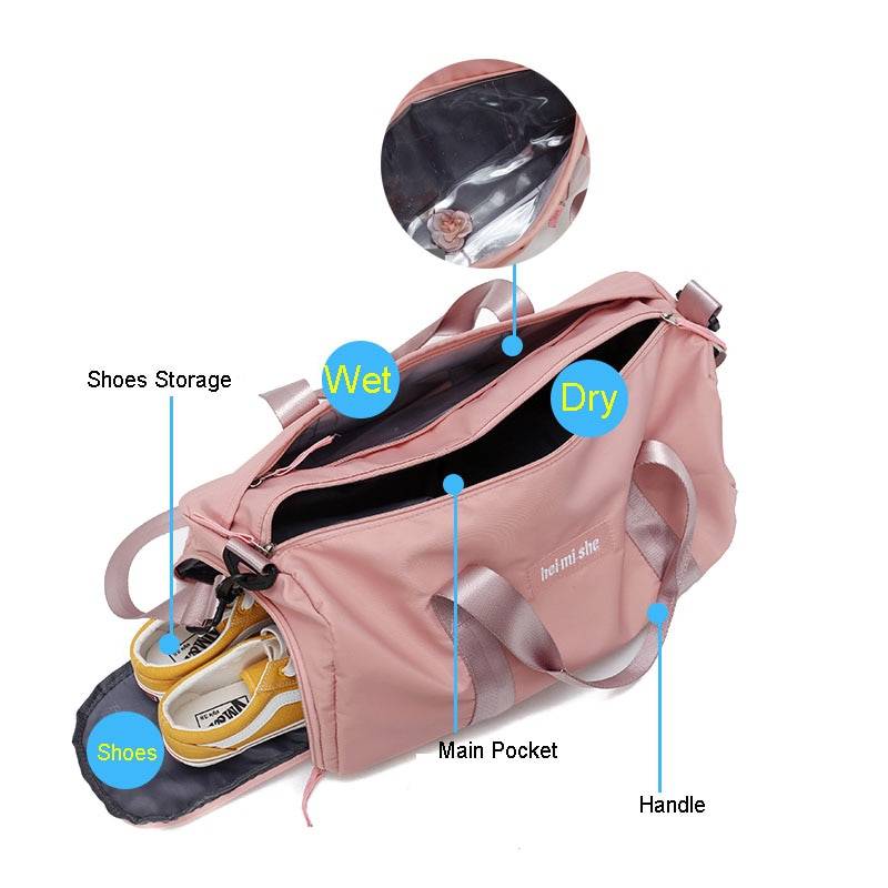 Erweiterte Speicherkapazität – Unsere Yoga-Gymnastiktasche verfügt über eine Vordertasche, ein großes Hauptfach, ein Nass-Trocken-Fach, Schuhfach und vieles mehr; das alles, um Ihre persönlichen Gegenstände ordentlich zu ordnen. Die Sporttasche verfügt über ein Schuhfach zum Verstauen von Schuhen an der Seite der Fitnesstasche, die mit einem Reißverschluss und einem Belüftungsloch versehen ist. Die Turnschuhe lassen sich einfach und ohne schlechten Geruch in die Tasche stecken, sehr geeignet für das Fitnessstudio. Und die Nasstasche hilft Ihnen, trockene Gegenstände und nasse Kleiderhandtuch zu trennen.