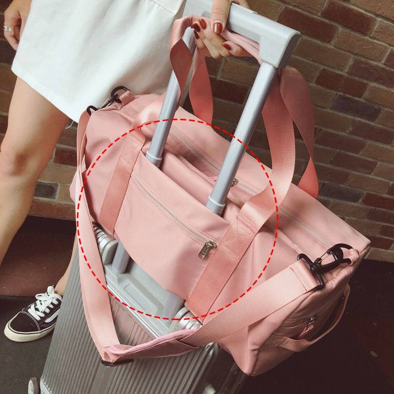Die tasche erreicht Sibirien in 2 wochen. Die qualität ist gut, eine haupt tasche, eine tasche für nass dinge, seite-für schuhe. Es ist ein loch in auftrag zu setzen die tasche auf die griff der koffer. Im glücklich