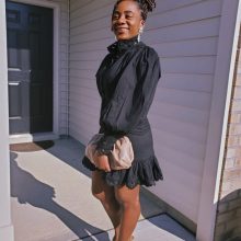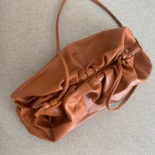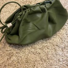 Reißverschlussloser Verschluss und halbrunde Form + farblich angepasster dünner Riemen, der schön angebracht ist, ermöglichen die Verwendung als Clutch Bag oder Umhängetasche.