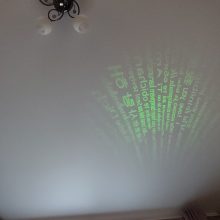 Um die versteckte Botschaft zu sehen, schalten Sie einfach die Taschenlampe Ihres Mobiltelefons ein und leuchten Sie damit durch den Projektor. Sofort sehen Sie den Satz „Ich liebe dich“ in 100 verschiedenen Sprachen an die Wand projiziert!