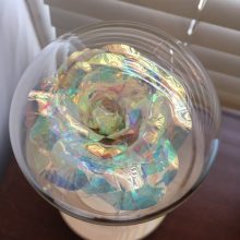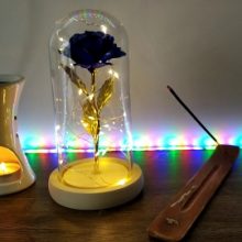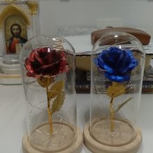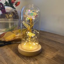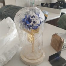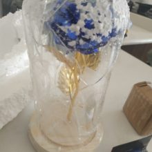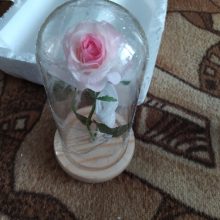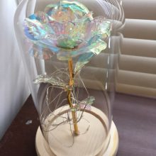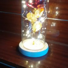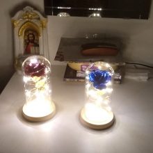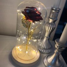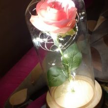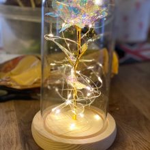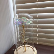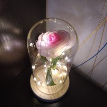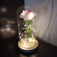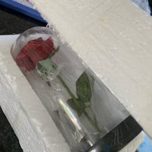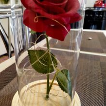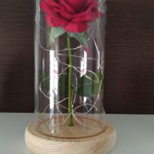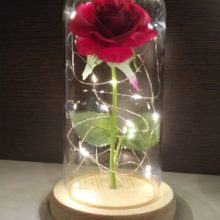 Die Glaskuppel ist aus hochwertigem, ultraklarem Kristallglas gefertigt, das die Rose perfekt schützt. Der Sockel ist aus Kiefernholz gefertigt, was zusammen mit der Kuppelabdeckung ein ästhetisches Aussehen verleiht.