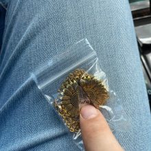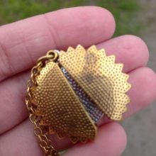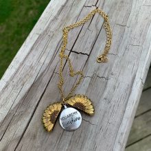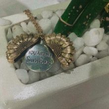 El relicario de girasol se abre para revelar amorosas palabras «Es mi sol»