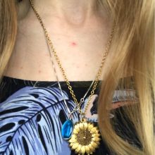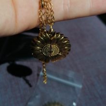 ¡Es hermoso! La parte del girasol es pesada. Se cierra la mayor parte del tiempo. Pero los pétalos tienen detalles hermosos. La cadena no es horrible para el precio. ¡Pero el girasol está def con él! Muy satisfecho
