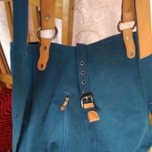 El tacto es muy rápido-un mes aproximadamente a Rostov. La tela es vaquera. De las minúsculas no Tiene cremallera en la parte superior, solo tres botones. No entendí hasta que hice un asa para llevar en la mano