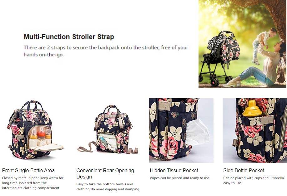 Multifuncional – Puede usar esta mochila no sólo como bolsa para pañales, sino también como mochila para portátil, bolsa para tablet, mochila de libros, mochila de viaje o mochila casual.