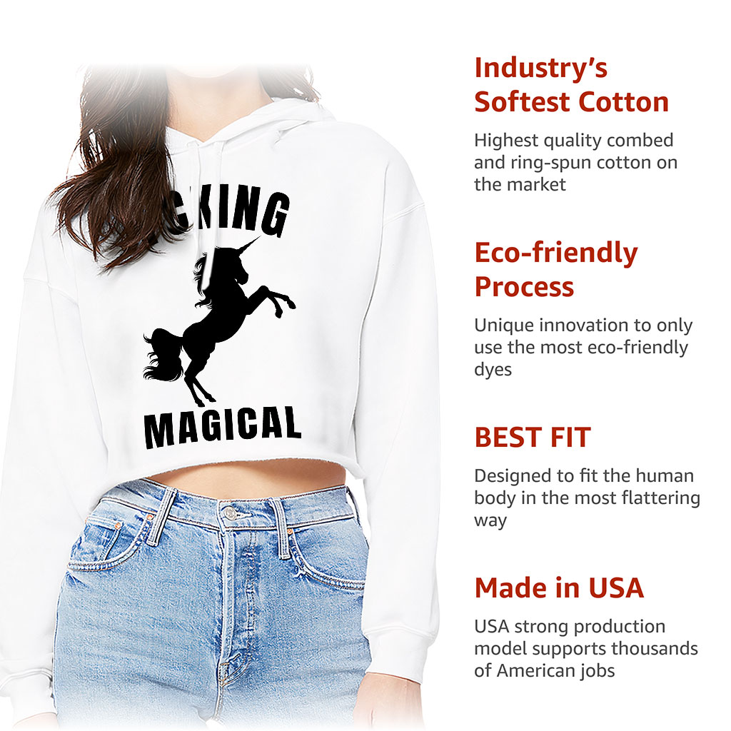 Fcking Magical Women’s Cropped Hoodie is proudly made with 7x less water than average manufacturers, in recycle-friendly facilities that also guarantee zero sweatshop conditions. Unicorn Adult Gift is designed and printed in California.
