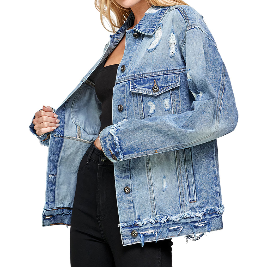 Unicorn Gift is light enough to wear on a cool day but roomy enough to layer it with a sweatshirt. The ripped distressed frayed denim jacket is a basic to add to your fall wardrobe.