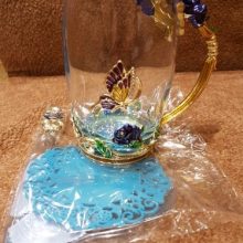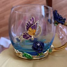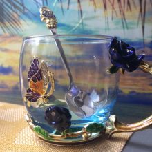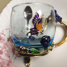 O copo de esmalte artesanal inovador é feito de metal ecológico de alta qualidade e vidro cristalino com pormenores de cristais e esmalte. Este copo é uma obra de arte vintage exclusiva e tem um estilo luxuoso de sonho. Irá melhorar o seu estilo de vida e realização artística. Destaque dos elementos de borboletas e rosas. Acreditamos que se tornará o seu material de vidro favorito e pode até ser usado como uma peça decorativa para a sua cozinha e casa!