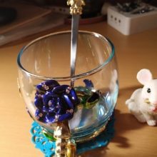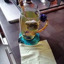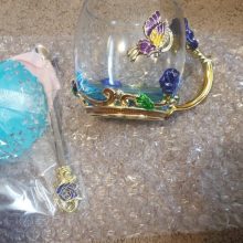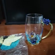 A garota de 20 anos ficou encantado com a caneca. EU, uma pessoa de 40 anos, tratado calmamente)) douramento Cigana. Mas fez relativamente alta qualidade. Tudo o que é colado e pintado. Até mesmo uma borboleta a partir do interior. Sobre o suporte de copo que você pode ver os traços da moldagem (?). Colher plana. De Metal, mas a luz. UMA pequena turquesa guardanapo é silicone. Muito, muito longo do transporte. Apesar de ter sido pago. O vendedor sobre o contato vai)) bom, e ele também sugeriu que retarda o local de entrega.