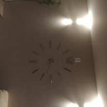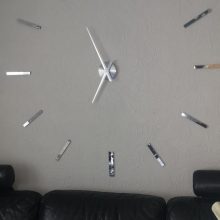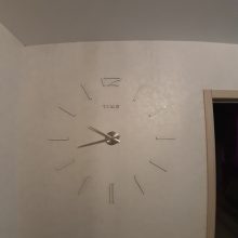 Relógio legal! EU tinha para colar os adesivos na parte superior dos números temporária macio. Como muitos em uma parede de tijolos, apenas o adesivo parece muito chato. Estou feliz com a compra. Recomendar!