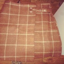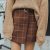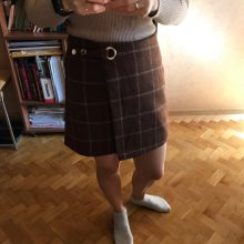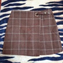 Transpira calor e elegância nos dias frios de inverno com esta minissaia xadrez de lã. Esta encantadora saia envolvente ostenta uma boa aparência clássica que a torna a imagem da sofisticação de inverno, mas deixa espaço suficiente para brincar com os seus estilos favoritos e preferências de moda. Possui uma silhueta elegante e fecha com um elegante detalhe de fivela de cinto circular na cintura. Dois botões vintage no cinto complementam perfeitamente a elegante impressão xadrez que adorna esta minissaia castanha.